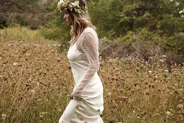 For the launch of her new wedding dress collection, Miller enlisted the help of BRIDES fashion director Elle Strauss and model Dylan Penn, offspring of our favorite Princess Bride Robin Wright and Sean Penn, to produce a to-die-for lookbook that totally embodies the spirit of the collection. Get your “Pin It” buttons ready brides-to-be, the result is enough to inspire rustic bohemian brides for a lifetime. A dreamy Hudson, NY locale? Check! Perfectly wild flowers? Check! Lacey bohemian dresses layered with velvet and denim? Check! Check! Check! Needless to say we are totally in love with this collection.